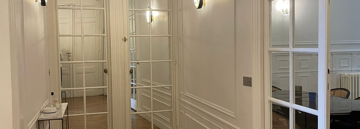 Finalisation des travaux d’un appartement de 150 m², combinant un style luxueux et chaleureux tout en préservant le charme authentique des immeubles haussmanniens. Le projet met en valeur des matériaux nobles tels que le bois et le marbre blanc, pour un rendu à la fois raffiné et intemporel.