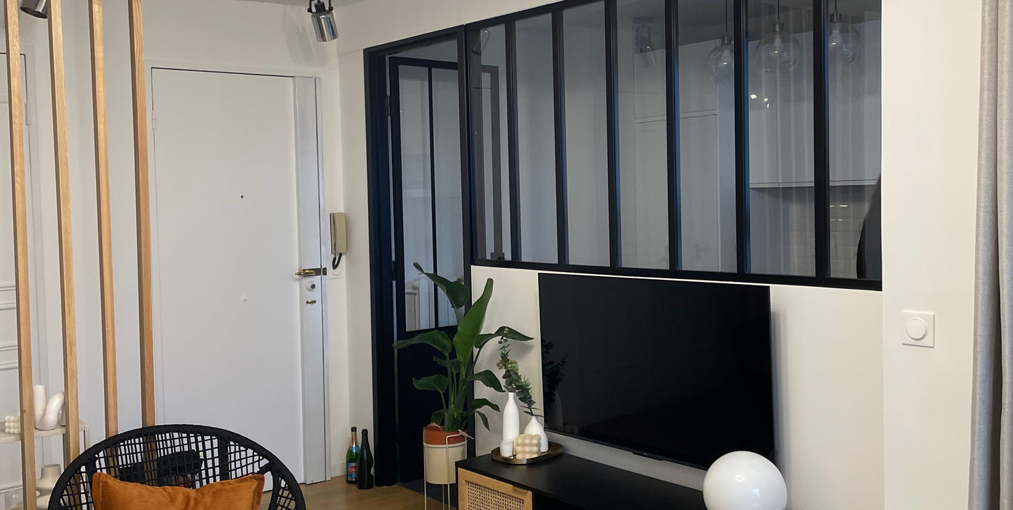 Rénovation d’un appartement de 60 m², étendu à 62 m², avec pour objectif sa transformation en T3 destiné à la location. Le style adopté est celui de la campagne parisienne, mêlant charme rustique et élégance citadine pour une ambiance chaleureuse et raffinée.
