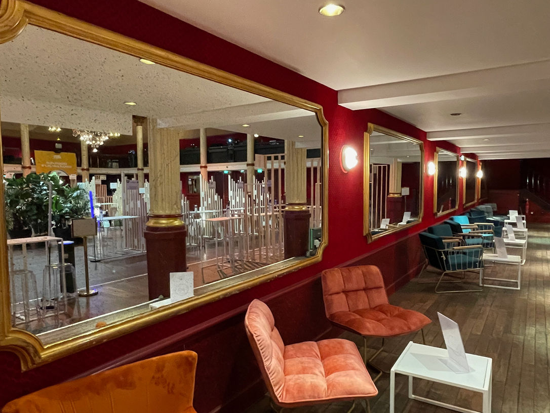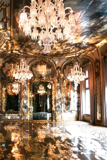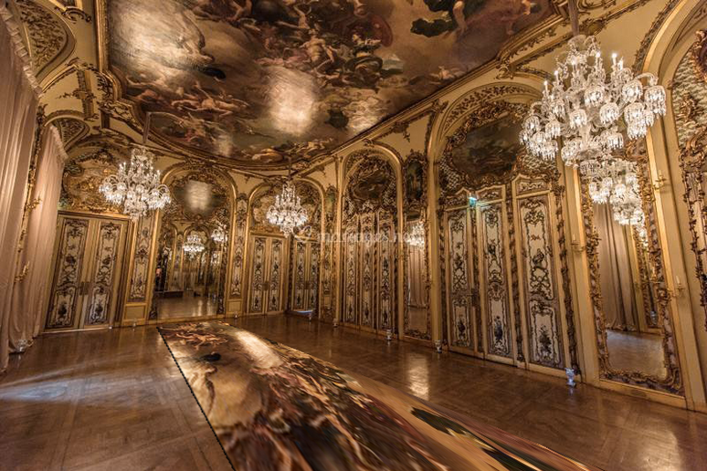 Les propositions visent à mettre en valeur les lustres et les peintures de cette salle à travers l'utilisation du reflet.